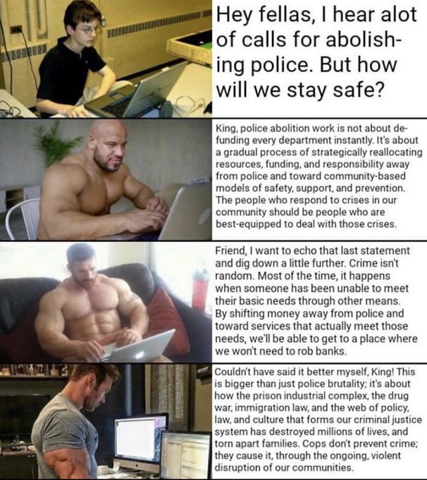 Buff guys help out nerdy kid refers to a three and four panel meme formats in which several bodybuilders usually flex lewis mike ohearn and another unidentified muscular man advise a male teenager sitting in front of a laptop on various subjects.
