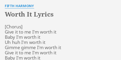 Fifth Harmony - Worth It Lyrics. Cause I know Im worth it Is it too much to look me in the eye And listen to what Im saying this time Im so tired of being up on your shelf And if thats what you want You want somebody else Cause Im worth it Youre crazy baby if you think that I dont know it I aint afraid to walk away if you cant see it believe it And give me the love I. Its just not worth it.