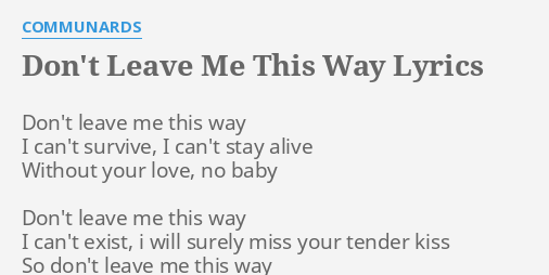 Dont leave me baby lyrics. Dont leave me this way I cant survive I cant stay alive Without your love no baby Dont leave me this way I cant exist I will surely miss your. And you cant see me in the middle of the night Just close your eyes and say a prayer Its okay I know youre scared when Im not here But Ill always be right there Even though Im leavin I aint goin nowhere Verse 2 Dad well be late and Uncle Sam dont like to wait Hes got a big old plane thats gonna take. Paroles de Baby Dont Leave Me Ms Krazie.