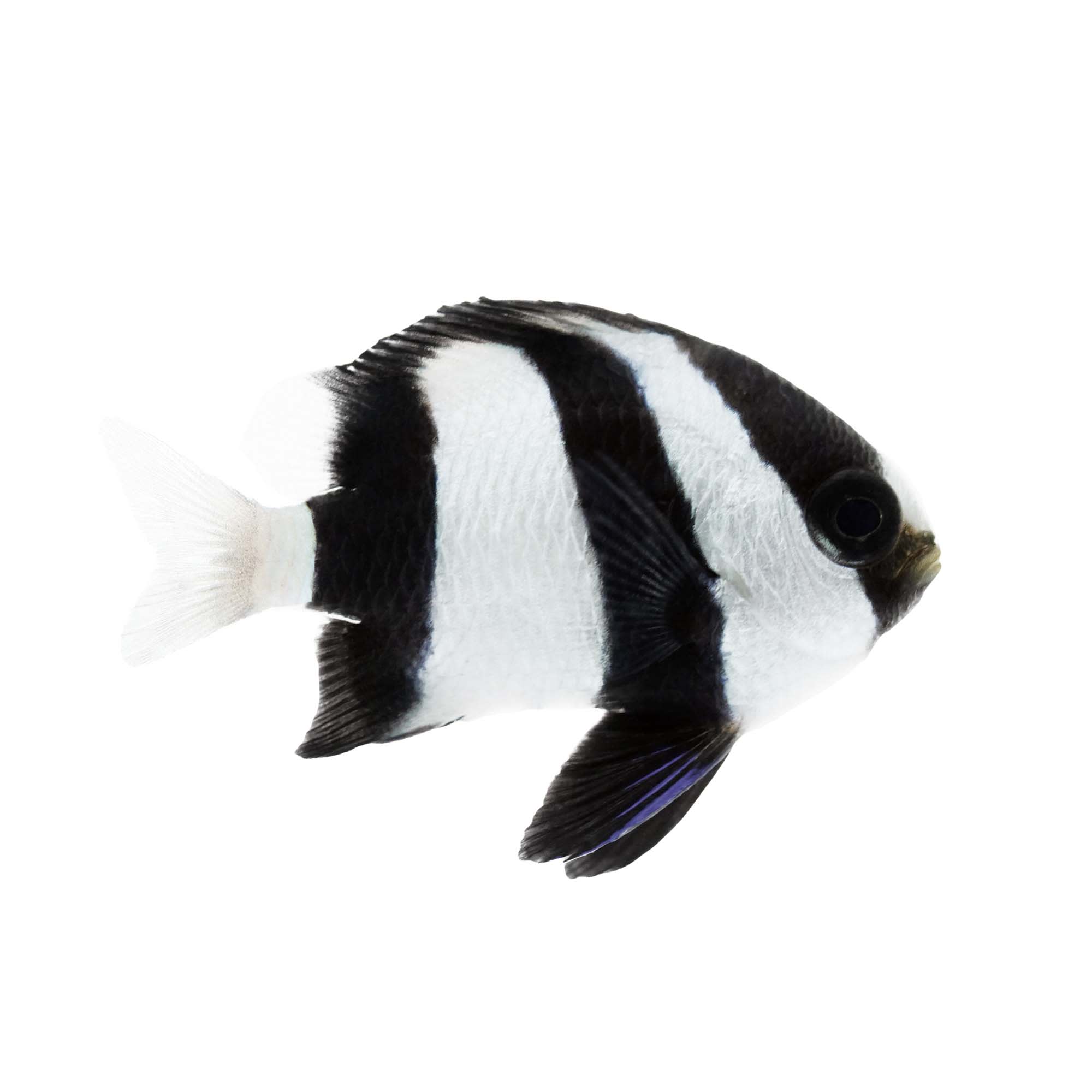 The three-stripe is a good example as its look is nothing more than 3 broad black and white stripes on a body that doesnt get more than about 25 inches long. The 3-Stripe Damselfish also known as the Three Striped Damselfish White-tailed Damselfish and Humbug Dascyllus is a popular fish. You should steer clear of the 3 stripe damsel as they get mean.